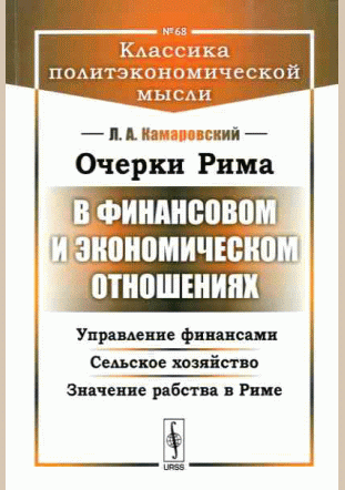 Камаровский, Л.А. Очерки Рима в финансовом и экономическом отношениях : Управление финансами. Сельское хозяйство. Значение рабства в Риме / Л. А. Камаровский. — Изд. 2-е, репр. воспроизведение изд. 1869 г.. — Москва : ЛЕНАНД, 2018. — 138 с.. — (Классика политэкономической мысли; № 68). — . Напечатано по старой орфографии.. — ISBN 978-5-9710-4766-7 : 298.00 р.