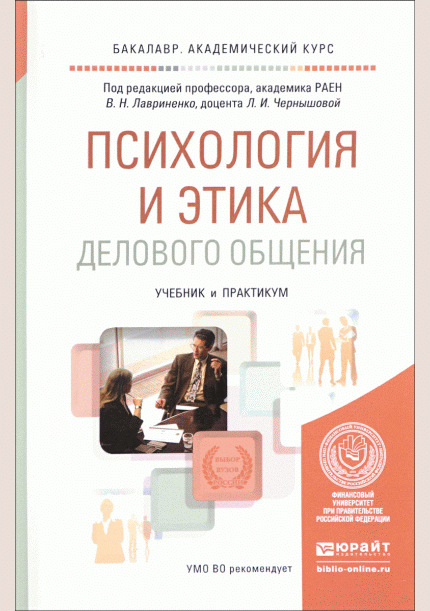 Психология и этика делового общения : учебник и практикум для академического бакалавриата / редакторы: В. Н. Лавриненко, Л. И. Чернышова. — 7-е изд., перераб. и доп.. — Москва : Юрайт, 2019. — 408 с.. — (Бакалавр). — ISBN 978-5-534-01353-5 : 1329.00 р.
