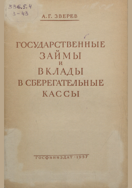 Зверев, А.Г. Государственные займы и вклады в сберегательные кассы / А. Г. Зверев. — Москва : Госфиниздат, 1957. — 47 с.: табл.