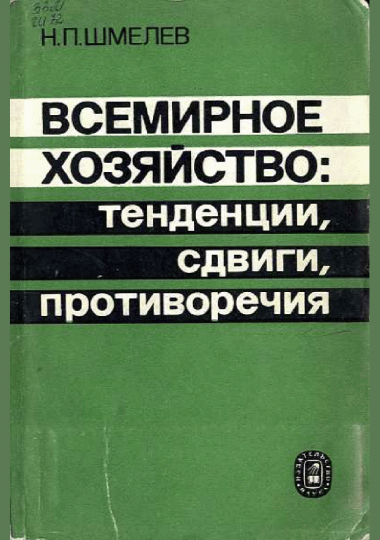 Шмелев, Н.П. Всемирное хозяйство: тенденции, сдвиги, противоречия / Н. П. Шмелев; Ред. Ю. И. Бобраков. — Москва : Наука, 1987. — 205 с.