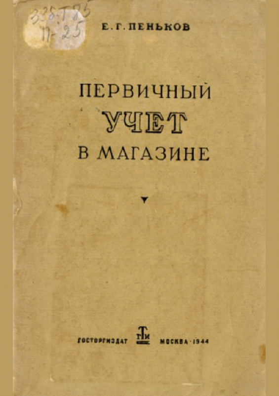 Пеньков, Е.Г. Первичный учет в магазине : Учебн. пособие для курсов подготовки материально-ответственных лиц / Е.Г. Пеньков. — Москва : Госторгиздат, 1944. — 54 с.. — 3.00 р.