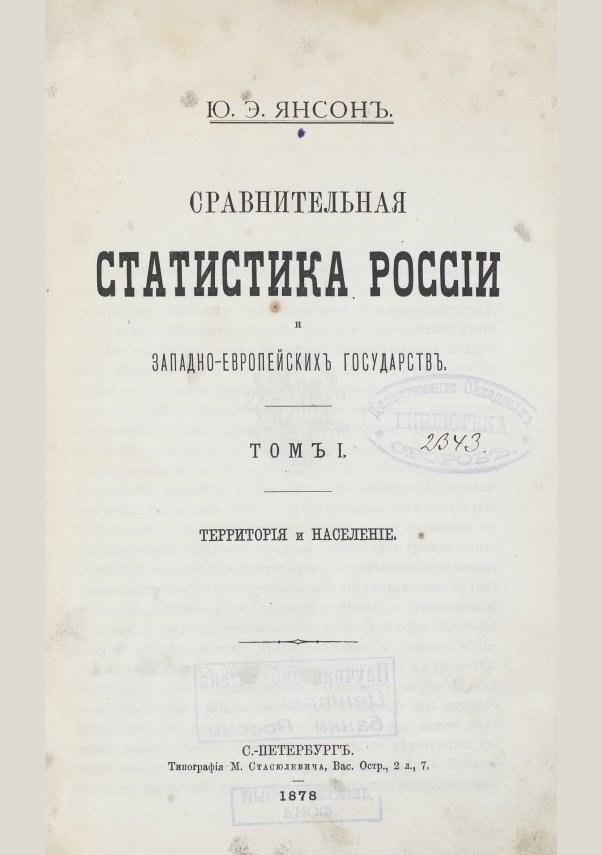 Территория и население. — 1878. — XV, 372 с.. — . Напечатано по старой орфографии. — (в пер.) : 30.00 р.