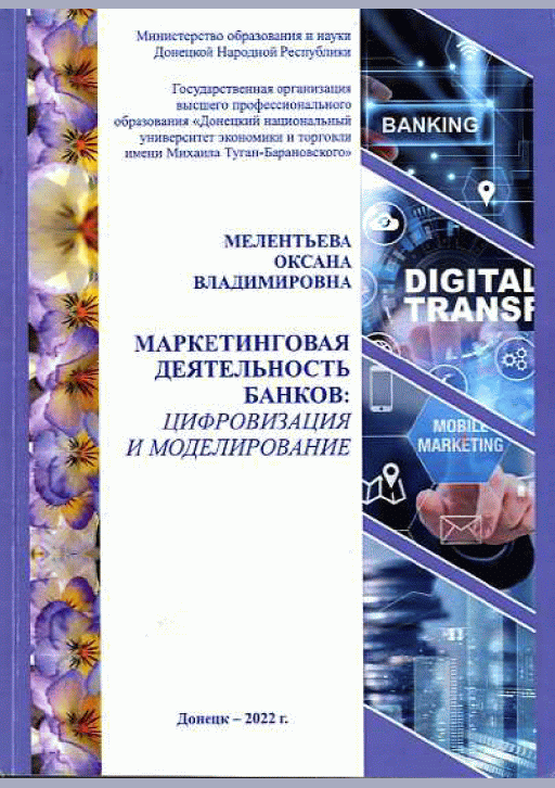 Мелентьева, О.В. Маркетинговая деятельность банков : цифровизация и моделирование : монография / О. В. Мелентьева; Донецкий национальный университет экономики и торговли имени Михаила Туган-Барановского. — Донецк, 2022. — 386 с.: ил., табл.. — Библиогр.: с. 316-343. — ISBN 978-5-00202-086-7.