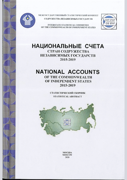Национальные счета стран Содружества Независимых Государств. 2015-2019, National Accounts of the Commonwealth of Independent States. 2015-2019 : статистический сборник / Межгосударственный статистический комитет СНГ. — Москва : Межгосударственный статистический комитет Содружества Независимых Государств, 2020. — 444 с.. — ISBN 978-5-89078-166-6.