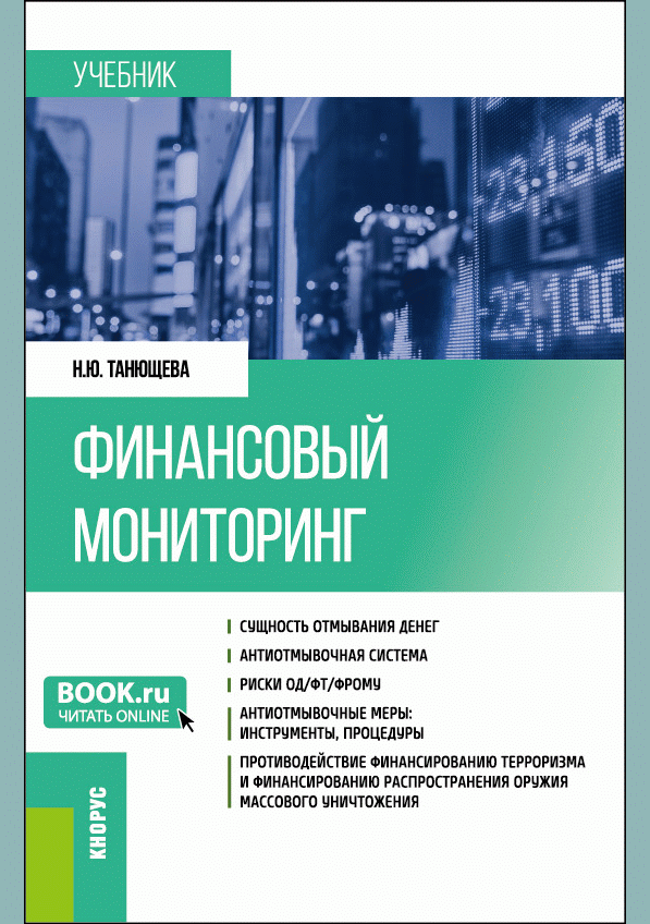 Танющева, Н.Ю. Финансовый мониторинг : учебник / Н. Ю. Танющева; рецензенты: Н. Н. Куницина, Е. Н. Алифанова. — Москва : КноРус, 2023. — 162 с.: рис.. — (Бакалавриат и магистратура). — Библиогр.: с. 154-161. — ISBN 978-5-406-11280-9.