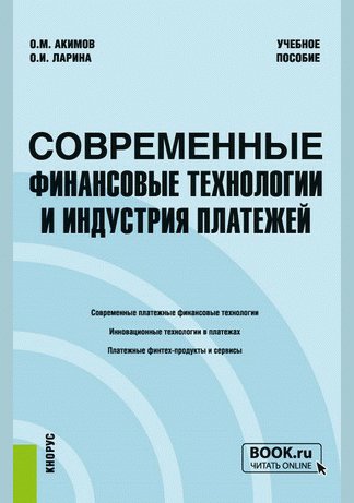 Акимов, О.М. Современные финансовые технологии и индустрия платежей : учебное пособие для вузов / О. М. Акимов, О. И. Ларина; рецензенты: О. М. Махалина, Н. В. Кузнецов. — Москва : КноРус, 2023. — 205 с.: ил., табл., граф.. — (Бакалавриат и магистратура). — ISBN 978-5-406-10372-2.