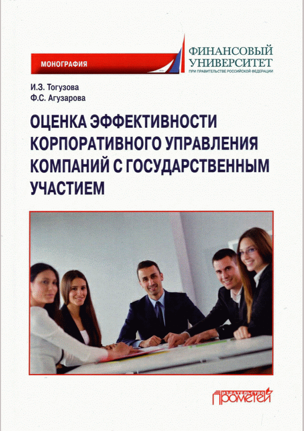 Тогузова, И.З. Оценка эффективности корпоративного управления компаний с государственным участием : монография / И. З. Тогузова, Ф. С. Агузарова; Финансовый университет при Правительстве Российской Федерации, Владикавказский филиал. — Москва : Прометей, 2022. — 200 с.: граф., ил., табл.. — Библиогр.: с. 182-189. — ISBN 978-5-00172-271-7.