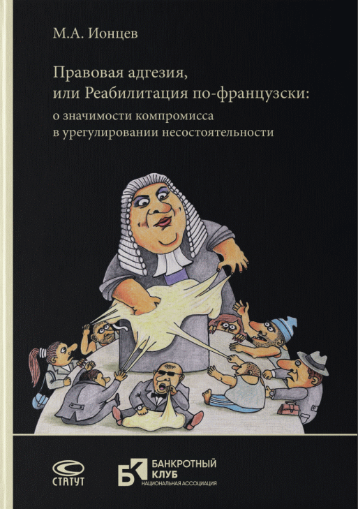 Ионцев, М.А. Правовая адгезия, или Реабилитация по-французски : о значимости компромисса в урегулировании несостоятельности / М. А. Ионцев; рецензенты: В. И. Лепина [и др.]; Национальная ассоциация Банкротный клуб. — Москва : Статут, 2023. — 208 с.: табл.. — Библиогр.: с. 190-201. — ISBN 978-5-8354-1935-7.