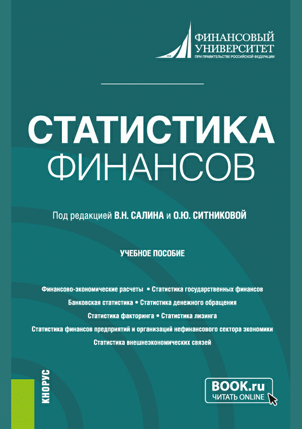 Статистика финансов : учебное пособие / Финансовый университет при Правительстве Российской Федерации; редакторы: В. Н. Салина, О. Ю. Ситникова; рецензенты: А. Б. Духон, А. А. Романов. — Москва : КноРус, 2022. — 403 с.: цв. ил., табл., граф.. — (Бакалавриат и магистратура). — Библиогр.: с. 385-390. — ISBN 978-5-406-09714-4.