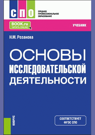 Розанова, Н.М. Основы исследовательской деятельности : учебник / Н. М. Розанова. — Москва : КноРус, 2024. — (Среднее профессиональное образование). — ISBN 978-5-406-12050-7.