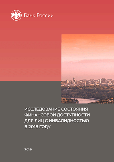 Исследование состояния финансовой доступности для лиц с инвалидностью в 2018 году / Центральный банк Российской Федерации, Служба по защите прав потребителей и обеспечению доступности финансовых услуг. — Москва : Банк России, 2019. — 59 с.: граф., табл.