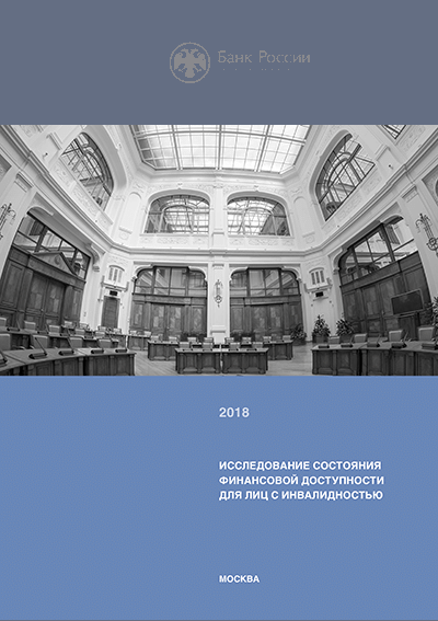 Исследование состояния финансовой доступности для лиц с инвалидностью. 2018 / Центральный банк Российской Федерации, Служба по защите прав потребителей и обеспечению доступности финансовых услуг. — Москва : Банк России, 2018. — 50 с.: граф., табл.