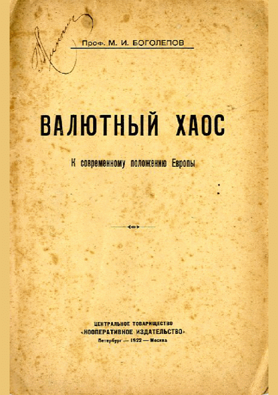 Боголепов, М.И. Валютный хаос : к современному положению Европы / М. И. Боголепов. — Прижизн. изд.. — ПетербургМосква : Кооперативное издательство, 1922. — 72 с.: табл.