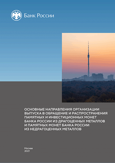 Основные направления организации выпуска в обращение и распространения памятных и инвестиционных монет Банка России из драгоценных металлов и памятных монет Банка России из недрагоценных металлов / Центральный банк Российской Федерации, Департамент наличного денежного обращения. — Москва : Банк России, 2021. — 11 с.: табл.