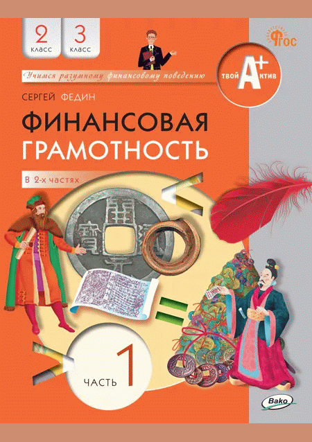 Федин, С.Н. Финансовая грамотность. Ч. 1 : 2-3 классы : учебник для общеобразовательных организаций : в 2 частях / С. Н. Федин; редактор М. Н. Сизых. — 2-е изд.. — Москва : ВАКО, 2023. — 112 с.: цв. ил.. — (Учимся разумному финансовому поведению). — ISBN 978-5-408-06558-5 (Ч. 1).