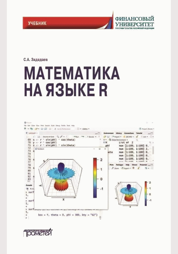 Зададаев, С.А. Математика на языке R : учебник / С.А. Зададаев; рецензенты: В.И. Соловьев, Д.В. Сошников; Финансовый университет при Правительстве Российской Федерации. — 3-е изд., доп. и перераб.. — Москва : Прометей, 2024. — 346 с.: цв. ил., табл., граф.. — ISBN 978-5-00172-606-7.