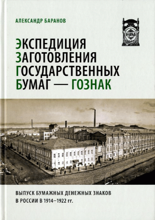 Баранов, А.Г. Экспедиция заготовления государственных бумаг - Гознак : выпуск бумажных денежных знаков в России в 1914-1922 / А. Г. Баранов; рецензенты: А. П. Балаченкова, А. А. Богданов. — Москва : Издательство Олега Пахмутова, 2023. — 468 с.: цв. ил., табл.. — ISBN 978-5-6047511-9-0.