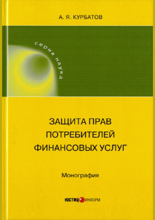 Курбатов, А.Я. Защита прав потребителей финансовых услуг : монография / А. Я. Курбатов. — Москва : Юстицинформ, 2023. — 168 с.. — (Наука). — ISBN 978-5-7205-1918-6.