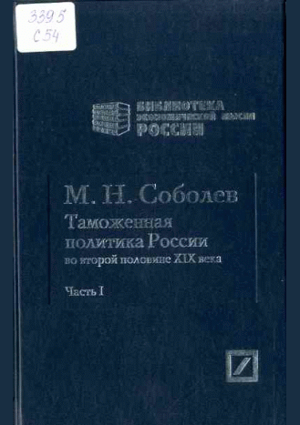 - 1. Соболев, М.Н. Таможенная политика России во второй половине XIX века / М. Н. Соболев. — Москва : Роспэн, 2012. — 464 с.. — (Библиотека экономической мысли России). — ISBN 978-5-8243-1622-3.