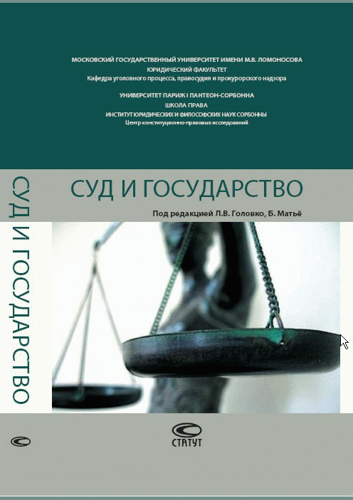 Суд и государство / Московский государственный университет им. М.В. Ломоносова, Юридический факультет, Кафедра уголовного процесса, правосудия и прокурорского надзора, Университет Париж I Пантеон-Сорбонна, Школа права, Институт юридических и философских наук Сорбонны, Центр конституционно-правовых исследований; ред.: Л. В. Головко, Б. Матье. — Электрон. текстовые дан.. — Москва : Статут, 2018. — 272 с.. — ISBN 978-5-8354-1427-7.