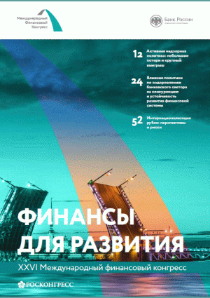 Финансы для развития. — [СПб.] : Росконгресс, 2017. — 76 с.: ил.. — Содержание : Активная надзорная политика: небольшие потери и крупный выигрыш/ А. Пономаренко, А. Синяков (стр.12-21); Влияние политики по оздоровлению банковского сектора на конкуренцию и устойчивость развития финансовой системы/ А. Круглова, Ю. Ушакова (стр.24-29); Бондизация: развитие облигационного рынка (стр.46-50); Интернационализация рубля: перспективы и риски (стр.52-61).