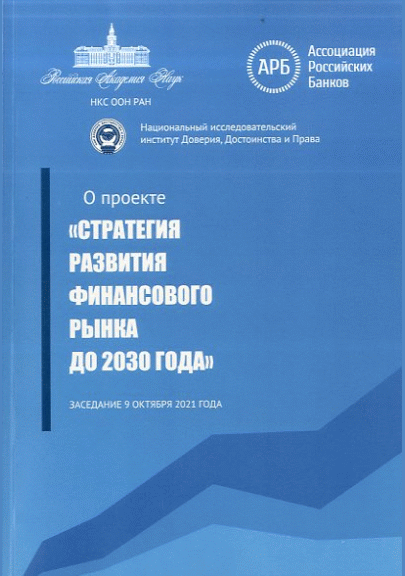 О проекте "Стратегия развития финансового рынка до 2030 года" : материалы заседания 9 октября 2021 года / Российская академия наук, Отделение общественных наук, Научно-консультационный совет по правовым, психологическим и социально-экономическим проблемам общества, Ассоциация российских банков, Национальный исследовательский институт Доверия, Достоинства и права; редактор Г. А. Тосунян. — Москва : Новые печатные технологии, 2021. — 156 с.: граф., табл., ил.. — ISBN 978-5-6046631-8-9.