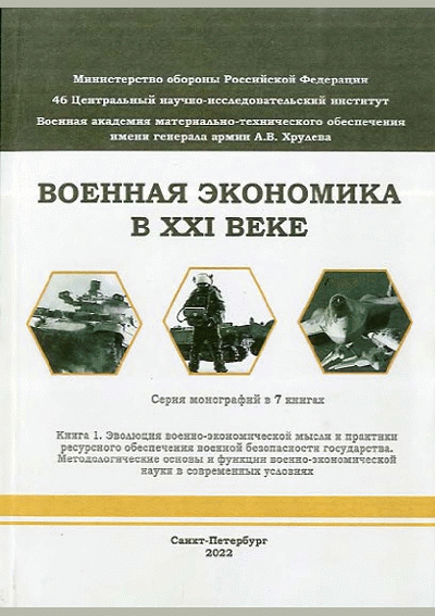 Военная экономика в XXI веке. Кн. 1. Эволюция военно-экономической мысли и практики ресурсного обеспечения военной безопасности государства. Методологические основы и функции военно-экономической науки в современных условиях : серия монографий в 7 книгах / О. Б. Ачасов, В. М. Буренок, С. В. Балобанов [и др.]; рецензенты: Г. А. Лавриков, Е. А. Дербин; 46 Центральный научно-исследовательский институт, Военная академия материально-технического обеспечения им. генерала армии А.В. Хрулева. — Изд. 2-е, доп.. — МоскваСанкт-Петербург : 46 ЦНИИ МО РФ : ВА МТО, 2022. — 400 с.: табл., граф.. — Библиогр. в конце глав. — ISBN 978-5-6046334-0-3.