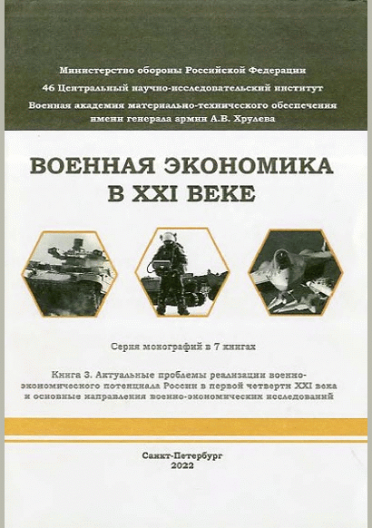 Военная экономика в XXI веке. Кн. 3. Актуальные проблемы реализации военно-экономического потенциала России в первой четверти XXI века и основные направления военно-экономических исследований : серия монографий в 7 книгах / О. Б. Ачасов, А. В. Бабкин, Г. В. Бабкин [и др.]; рецензенты: А. М. Кушнир, Е. А. Дербин; 46 Центральный научно-исследовательский институт, Военная академия материально-технического обеспечения им. генерала армии А.В. Хрулева. — Изд. 2-е, доп.. — МоскваСанкт-Петербург : 46 ЦНИИ МО РФ : ВА МТО, 2022. — 470 с.: ил.. — ISBN 978-5-6046334-4-1.