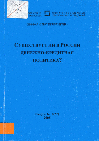 Существует ли в России денежно-кредитная политика : материалы семинара "Стратегия развития" от 7 февраля 2005 г. / Высшая школа бизнеса МГУ им. М.В. Ломоносова, Институт комплексных стратегических исследований. — Москва : ТЕИС, 2005. — 88 с.. — 200.00 р.