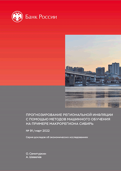 Семитуркин, О. Прогнозирование региональной инфляции с помощью методов машинного обучения на примере макрорегиона Сибирь / О. Семитуркин, А. Шевелев; Центральный банк Российской Федерации, Сибирское главное управление Центрального банка Российской Федерации, Центральный банк Российской Федерации, Департамент исследований и прогнозирования. — Москва : Банк России, март 2022. — 18 с.: граф., табл.. — (Серия докладов об экономических исследованиях; № 91). — Библиогр.: с. 18.