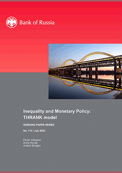 Vikharev, P. Inequality and monetary policy : THRANK model / P. Vikharev, A. Novak, A. Shulgin; The Central Bank of the Russian Federation, Volga-Vyatka Main Branch of the Bank of Russia. — Moscow : Bank of Russia, july 2023. — 99 p.: il.. — (Working Paper Series; # 113). — References: p. 45-49.