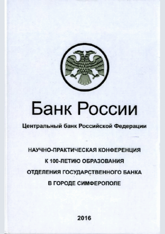 Материалы научно-практической конференции, посвященной 100-летию Отделения Государственного банка в г. Симферополе : 8 декабря 2015 года / Центральный банк Российской Федерации, Южное главное управление Центрального банка Российской Федерации, Отделение Республики Крым. — Издание посвящено 155-летнему юбилею Центрального банка Российской Федерации. — Симферополь : Банк России, 2016. — 176 с.: цв. ил., фот., граф.