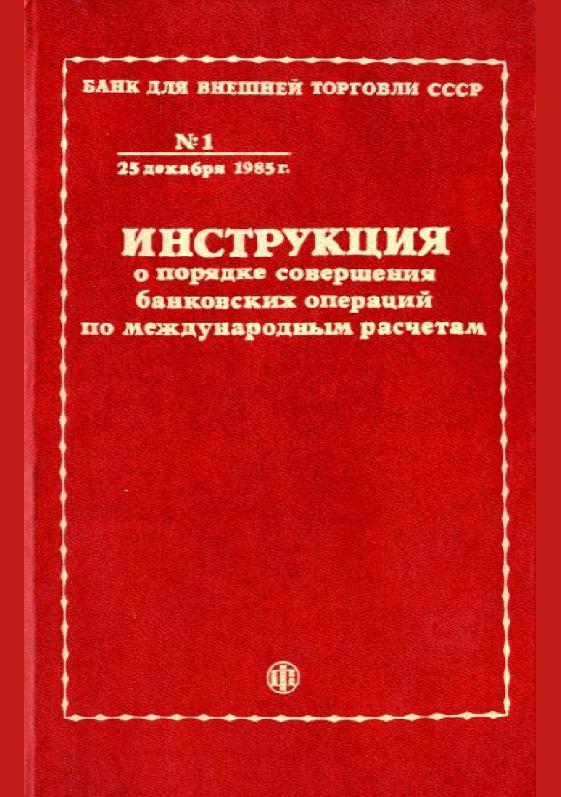 О порядке совершения банковских операций по международным расчетам : инструкция № 1 от 25 декабря 1985 г. / Банк для внешней торговли СССР (Внешторгбанк СССР). — Москва : Финансы и статистика, 1986. — 352 с.: табл.