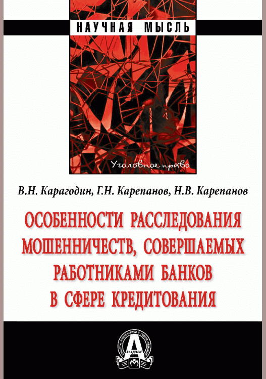 Карагодин, В.Н. Особенности расследования мошенничеств, совершаемых работниками банков в сфере кредитования : монография / В. Н. Карагодин, Г. Н. Карепанов, Н. В. Карепанов; рецензенты: Л. В. Бертовский, М. А. Неймарк. — Москва : Инфра-М, 2023. — 188 с.. — (Научная мысль). — Библиогр.: с. 161-178. — ISBN 978-5-16-108249-2.