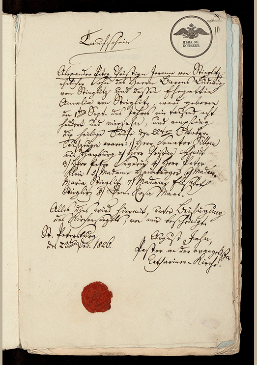 - 1. Штиглиц, Л. Прошение министру коммерции Н.П. Румянцеву о принятии русского подданства. 25 июня 1807 г. / Л. Штиглиц. — 2 с.