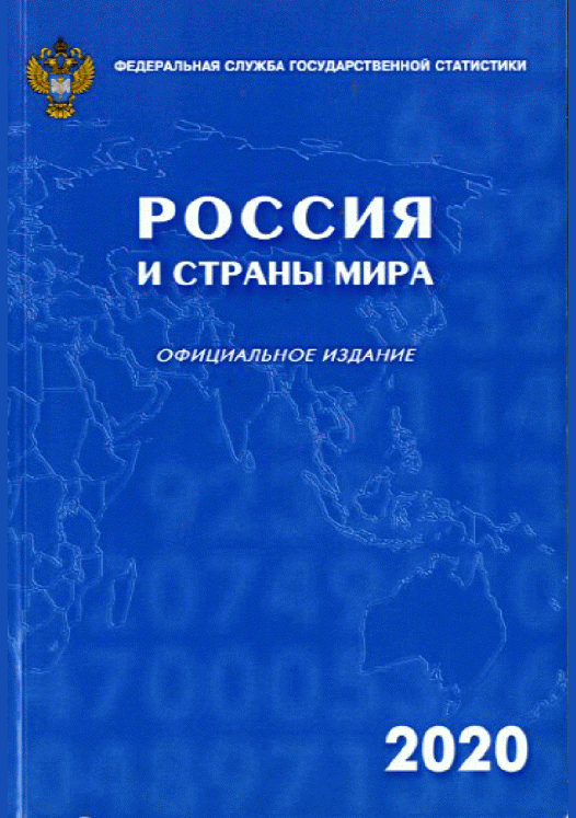 Россия и страны мира 2020 : статистический сборник / Федеральная служба государственной статистики. — Офиц. изд.. — Москва : Росстат, 2020. — 386 с.: табл.. — Библиогр.: с. 385. — ISBN 978-5-89476-500-6.