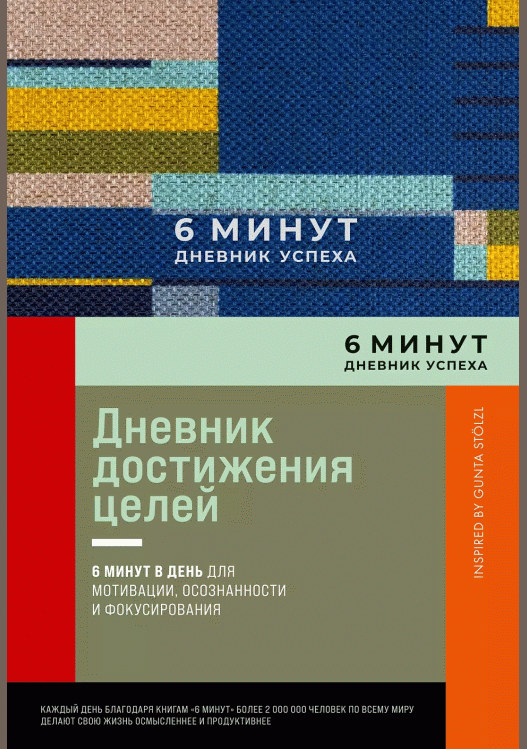 В основе концепции "6 минут. Дневник успеха" - ваше собственное определение успеха в профессиональной и личной жизни. Это может быть желание иметь больше денег, славы, любви, а возможно, спокойствия, независимости. Путь к успеху не менее индивидуален, чем его определение. Дневник поможет поставить цели, которые отвечают вашим личным желаниям и потребностям, а не чужим ожиданиям. Больше дел без усталости. Благодаря сочетанию практических упражнений по развитию осознанности и проверенных стратегий повышения продуктивности вы добиваетесь больших целей по-новому: не только последовательно, но и более спокойно. Достижение целей, обогащающих жизнь. а не просто запись всех текущих задач. Осознав свои истинные ценности и потребности с помощью теста, вы поставите перед собой значимые цели, к которым действительно стремитесь. Реализуйте собственное видение личного и профессионального успеха! Малые усилия - большие результаты. Концепция дневника основана на данных научных исследований и практических методах. В сочетании с проверенным 6-минутным принципом вы будете гарантированно двигаться к цели за шагом, привычка за привычкой - последовательно и с результатом в долгосрочной перспективе. Легко фокусироваться на главном. Структура дневника хорошо продумана: вы отфильтровываете задачи, концентрируетесь на тех, которые имеют положительное влияние на вашу жизнь. Тем самым преследуете истинные цели и на вас не действуют отвлекающие факторы. Скажите "нет" суете и хаосу и "да" ясности и внутреннему спокойствию.