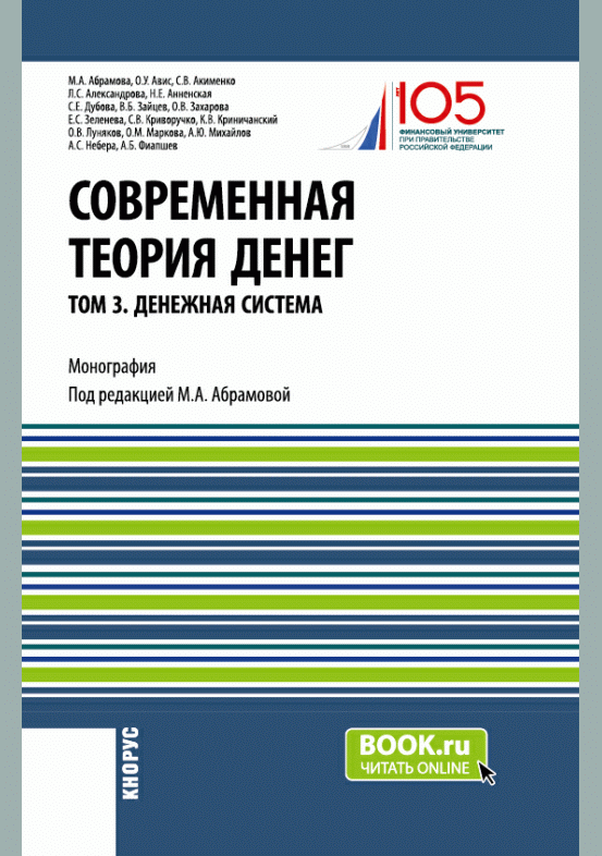 Современная теория денег. Т. 3. Денежная система : монография / М. А. Абрамова, О. У. Авис, С. В. Акименко [и др.]; редактор М. А. Абрамова; Финансовый университет при Правительстве Российской Федерации. — Москва : КноРус, 2025. — 194 с.. — ISBN 978-5-406-13668-3.