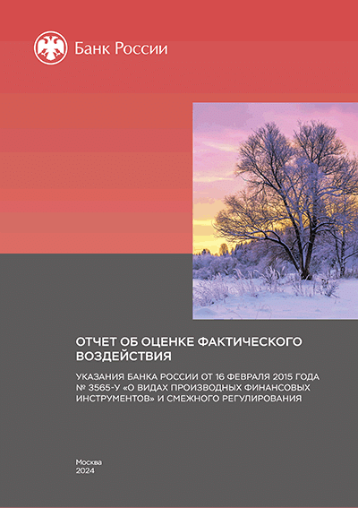Отчет об оценке фактического воздействия Указания Банка России от 16 февраля 2015 года № 3565-У "О видах производных финансовых инструментов" и смежного регулирования / Центральный банк Российской Федерации, Департамент стратегического развития финансового рынка. — Москва : Банк России, 2024. — 43 с.: граф., табл.