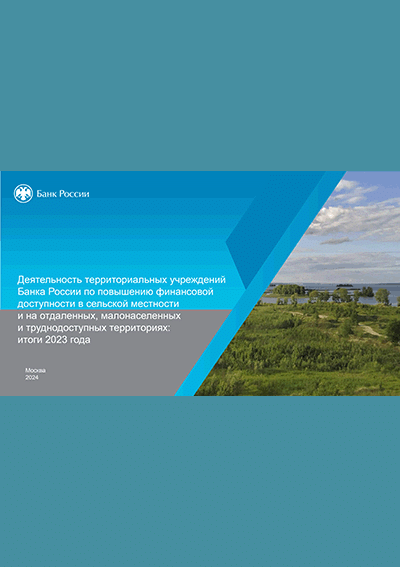 - 1. Деятельность территориальных учреждений Банка России по повышению финансовой доступности в сельской местности и на отдаленных, малонаселенных и труднодоступных территориях / Центральный банк Российской Федерации, Служба по защите прав потребителей и обеспечению доступности финансовых услуг. — Москва : Банк России, 2023. — 26 сл.