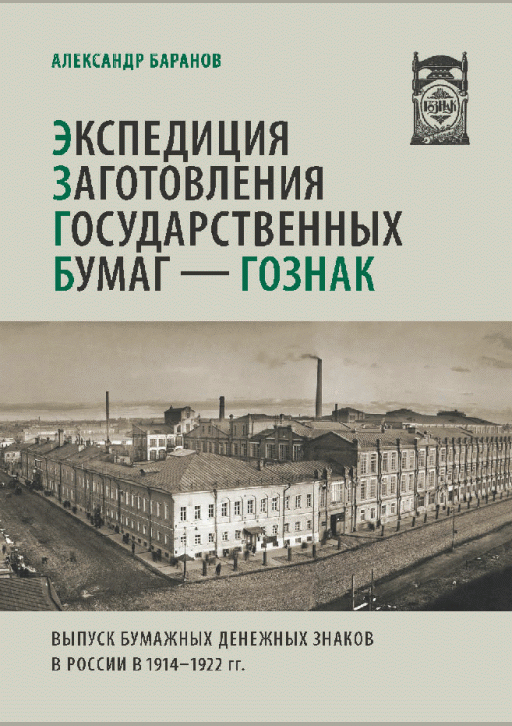 Баранова, А.Г. Экспедиция заготовления государственных бумаг - Гознак : выпуск бумажных денежных знаков в России в 1914-1922 гг. / А. Баранова; рецензенты : А. П. Балаченкова, А. А. Богданов. — Москва : Издательство Олега Пахмутова, 2023. — 475 с.: цв. ил., табл.. — Библиогр.: с. 456. — ISBN 978-5-9286-0299-4.