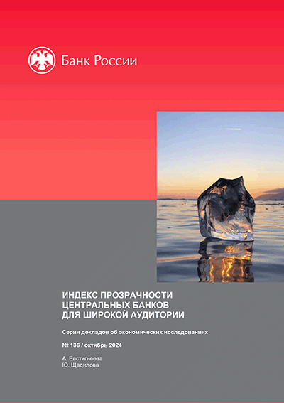 Евстигнеева, А. Индекс прозрачности центральных банков для широкой аудитории / А. Евстигнеева, Ю. Щадилова; Центральный банк Российской Федерации, Департамент денежно-кредитной политики. — Москва : Банк России, октябрь 2024. — 55 с.: граф., табл.. — (Серия докладов об экономических исследованиях; № 136). — Библиогр.: с. 52-55.