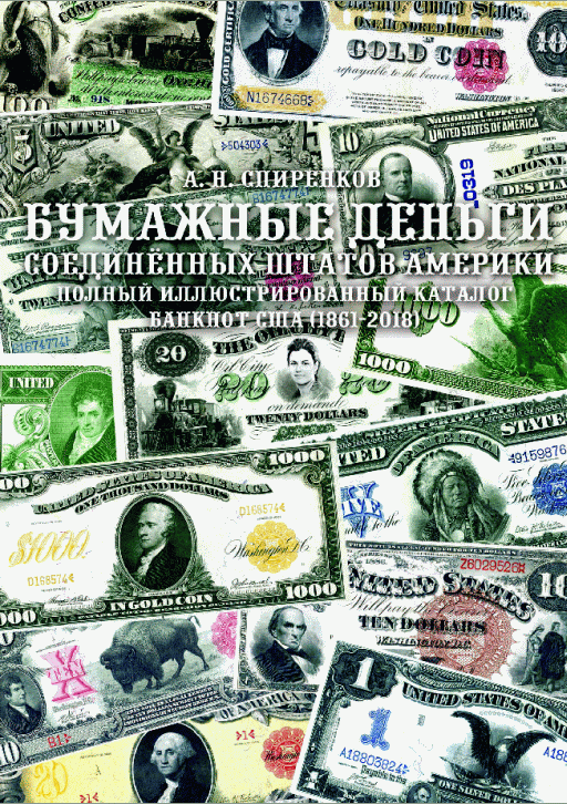 Спиренков, А.Н. Бумажные деньги Соединенных Штатов Америки : полный иллюстрированный каталог банкнот США (1861-2018) / А. Н. Спиренков. — Москва : Издательство Олега Пахмутова, 2019. — 598 с.: цв. ил.. — ISBN 978-5-6042133-0-8.