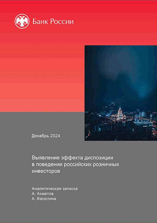 Ахметов, А. Выявление эффекта диспозиции в поведении российских розничных инвесторов / А. Ахметов, А. Васютина; Центральный банк Российской Федерации, Департамент исследований и прогнозирования. — Москва : Банк России, декабрь 2024. — 58 с.: граф., табл.. — (Аналитическая записка). — Библиогр.: с. 26-27.