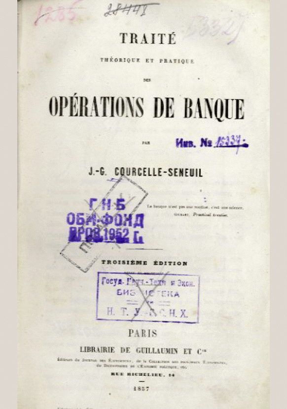 Courcelle-Seneuil, J.G. Traite theorique et pratique des operations de banque / J. G. Courcelle-Seneuil. — 3 ed.. — Paris : Librairie de Guillaumin et Сo, 1857. — 598 с.: tabl.