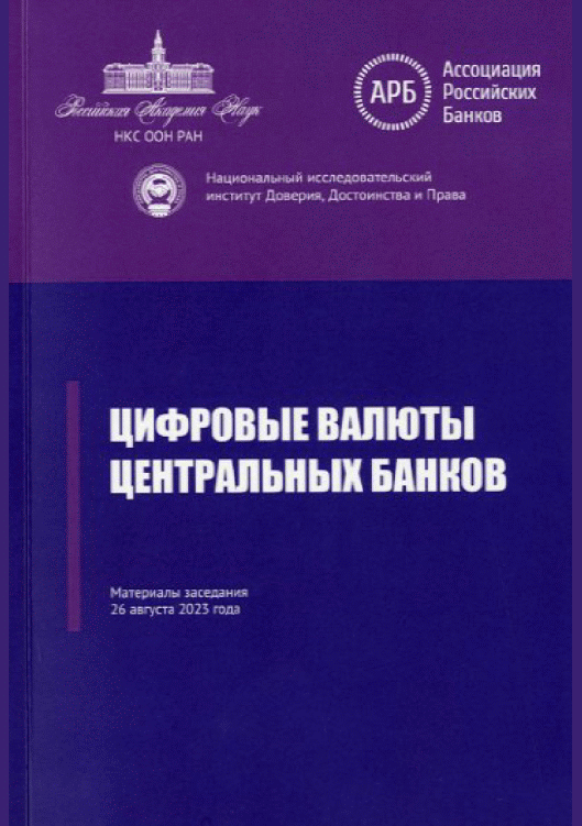 Цифровые валюты центральных банков. Вып. 31 : материалы заседания НКС ООН РАН и НИИ ДДиП 26 августа 2023 года / Научно-консультативный совет по правовым, психологическим и социально-экономическим проблемам общества Отделения общественных наук РАН [и др.]; редактор Г. А. Тосунян. — Москва : Новые печатные технологии, 2024. — 151 с.. — Содержание : Цифровые валюты центральных банков/ М. Ю. Головнин; Цифровой рубль и другие CBDC/ В. Л. Достов; Правовые основы цифровых валют центральных банков/ Л. В. Санникова; Является ли цифровой рубль 3-ей формой денег?/ С. В. Криворучко.