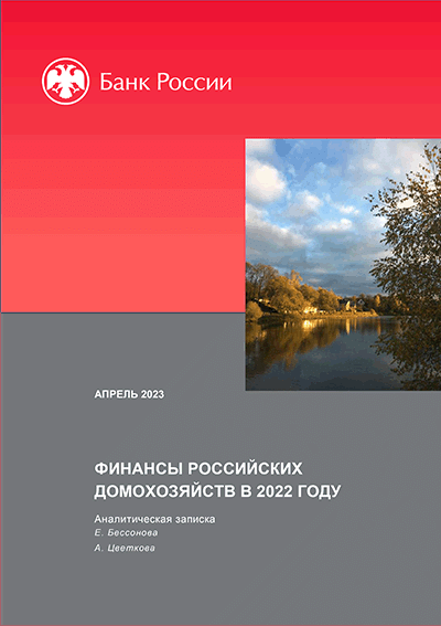 Бессонова, Е. Финансы российских домохозяйств в 2022 году / Е. Бессонова, А. Цветкова; Центральный банк Российской Федерации, Департамент исследований и прогнозирования. — Москва : Банк России, апрель 2023. — 28 с.: граф., табл.. — (Аналитическая записка).