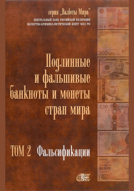 Подлинные и фальшивые банкноты и монеты стран мира. Т. 2. Фальсификации : справочник : в 2 томах / Центральный банк Российской Федерации, Экспертно-криминалистический центр МВД РФ; ответственный редактор Л. М. Пряжникова ; редакторы: М. М. Клыш, В. Д. Шанский. — Москва : Интеркрим-Пресс, 2021. — 448 с.. — (Валюты Мира). — 11650.00 р.