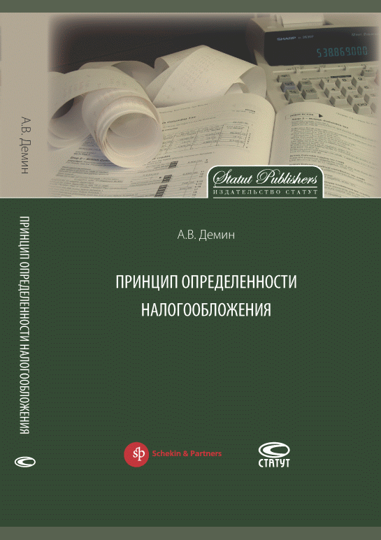 Демин, А.В. Принцип определенности налогообложения : монография / А. В. Демин; научный консультант Д. В. Винницкий; рецензенты: О. Ю. Бакаева [и др.]. — Москва : Статут, 2015. — 368 с.. — Библиогр.: с. 337-367. — ISBN 978-5-8354-1142-9.
