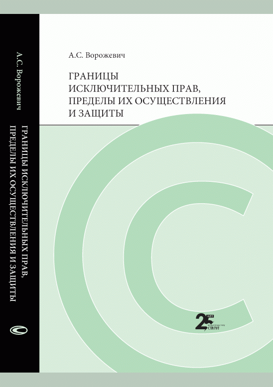 Ворожевич, А.С. Границы исключительных прав, пределы их осуществления и защиты / А. С. Ворожевич. — Москва : Статут, 2022. — 596 с.. — Библиогр.: с. 555-595. — ISBN 978-5-8354-1805-3.